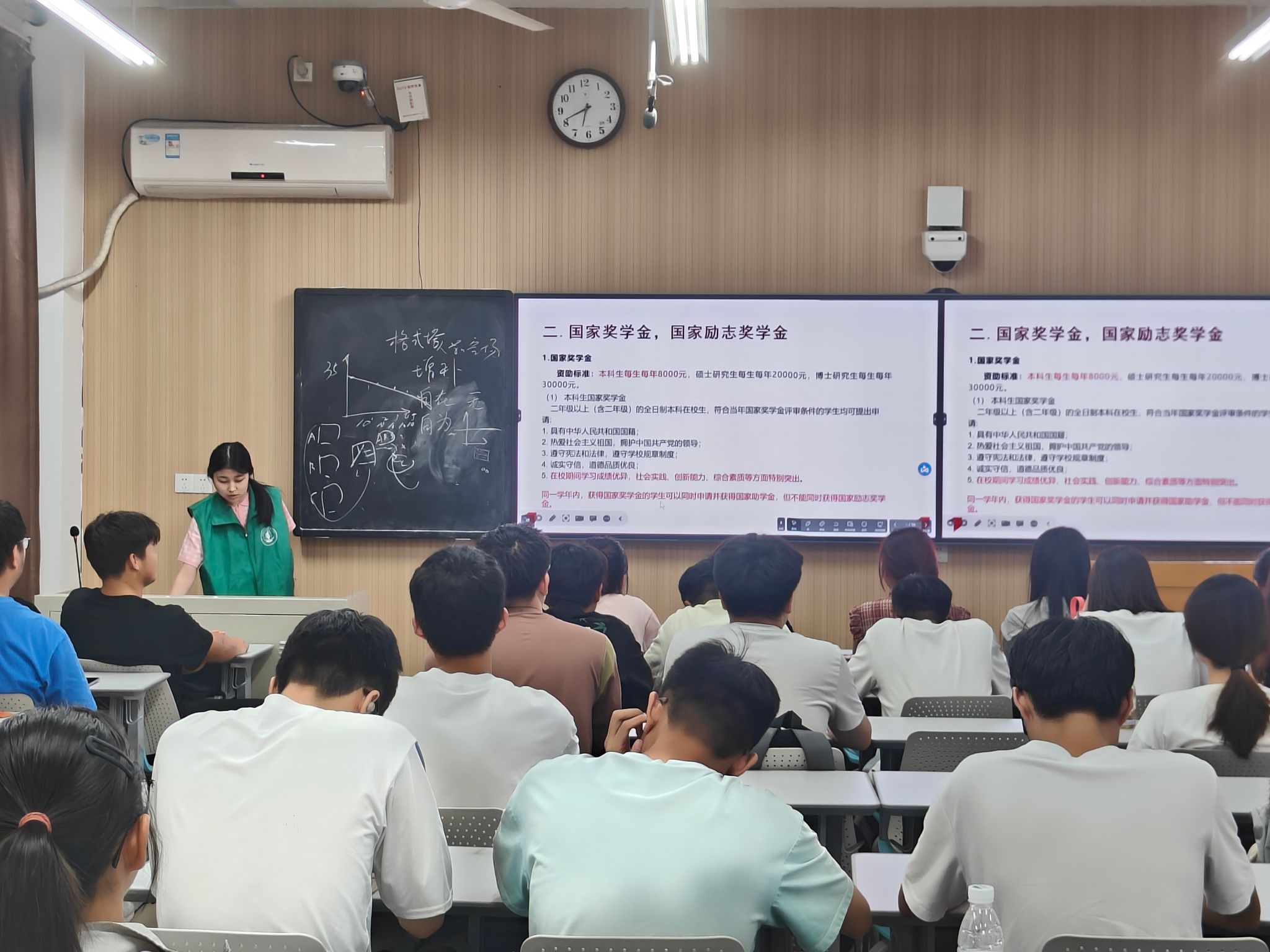 本次宣传活动主要从国家资助政策简介、如何有序开展资助工作两方面展开。首先,学生宣讲团成员向我院学生简单介绍了目前我国已建立的学生资助政策体系,并对国家奖学金、国家励志奖学金、国家助学金、国家助学贷款等各项资助政策的资助标准和申请条件进行了详细阐述,同时补充了勤工俭学、入伍服兵役等高校资助政策。最后,学生宣讲团成员向我院学生展示了麻豆传媒a片