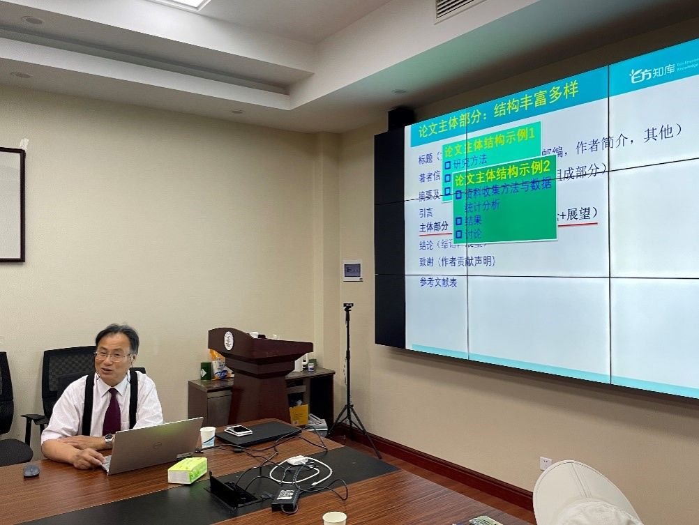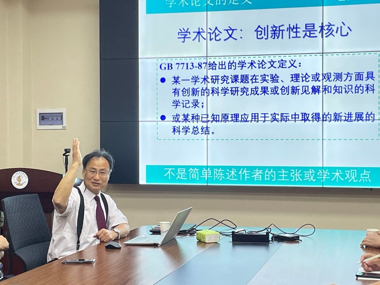 此次交流主要围绕写作规范及常见问题、投稿策略展开。在第一场报告中,张利田研究员首先以“创新性是学术论文的核心”引出学术论文的定义,随后强调了学术论文写作的重要性,并分析了学术论文可发表性的影响因素。张老师通过举例说明学术论文写作的基本要求,并强调学术论文格式、论文的整体结构及各部分写作需要严格符合国家相关行业标准。最后,张老师提醒同学们在写学术论文之前需要思考学术定位、逻辑规划、写作技术3个问题,并通过生动的案例对数据统计分析、格式要求中遇到的常见问题进行解析。