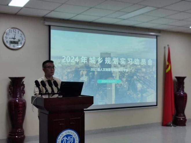 6月29日上午,我院于地学楼二楼报告厅召开2024年人文地理与城乡规划巩义野外实习动员会。实习队指导老师姚飞、邓晴晴、杨阳、朱乾坤等出席会议,2021级人文地理与城乡规划专业的30余名本科生参与会议。本次动员大会由实习队队长韩冬老师主持。
