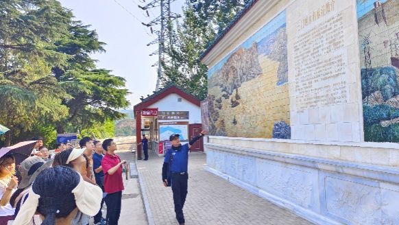 下午,联合实习队来到了函谷关,其位于中国河南省灵宝市境内的崤山与秦岭之间的山谷中,是古代丝绸之路上的一个重要关隘,也是历史上著名的军事要塞。这里不仅承载着深厚的历史文化意义,还具有独特的地理位置。在讲解员的讲解下,联合实习队不仅详细了解了老子的哲学思想和《道德经》的创作过程,通过典故“紫气东来”、“有无相生”,领略了古人的智慧和思想。此外,站在关前讲解员向我们介绍了函谷关的战略位置——其作为古代中原通往关中的咽喉要道,所处的地势险要,北临黄河,南接嵩山,两侧山势陡峭,一直是兵家必争之地,对于研究古代交通、军事防御以及区域经济交流具有极其重要的意义。结合对函谷关实景探索以及函谷关全景图的观测,同学们深刻认识到自古以来其作为军事要地起着重要的作用,素有“一夫当关,万夫莫开”的赞誉。