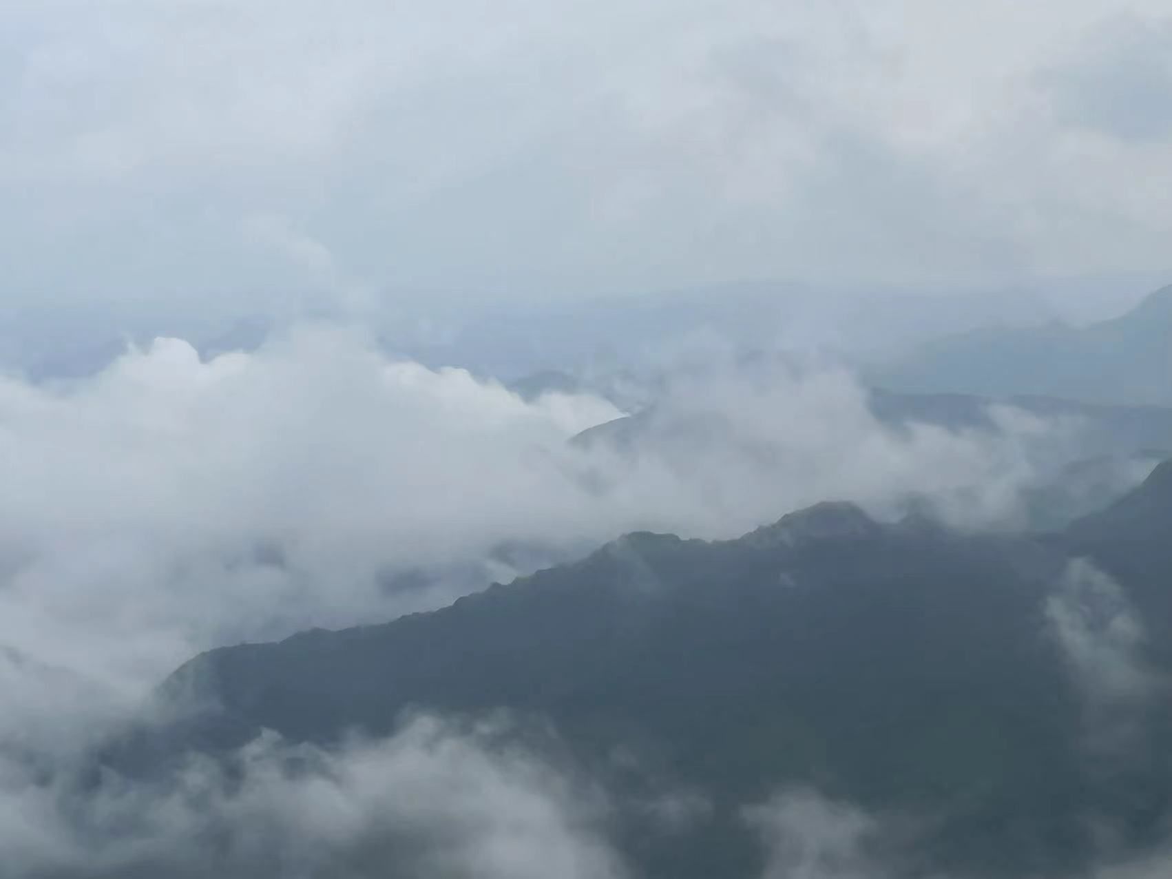 在经过一个小时的辛苦爬行后,同学们登上了茱萸峰峰顶,霎时间,只见云海翻涌、仙气漫山,真给人一种“飘飘然如遗世独立,羽化而登仙”之感。
