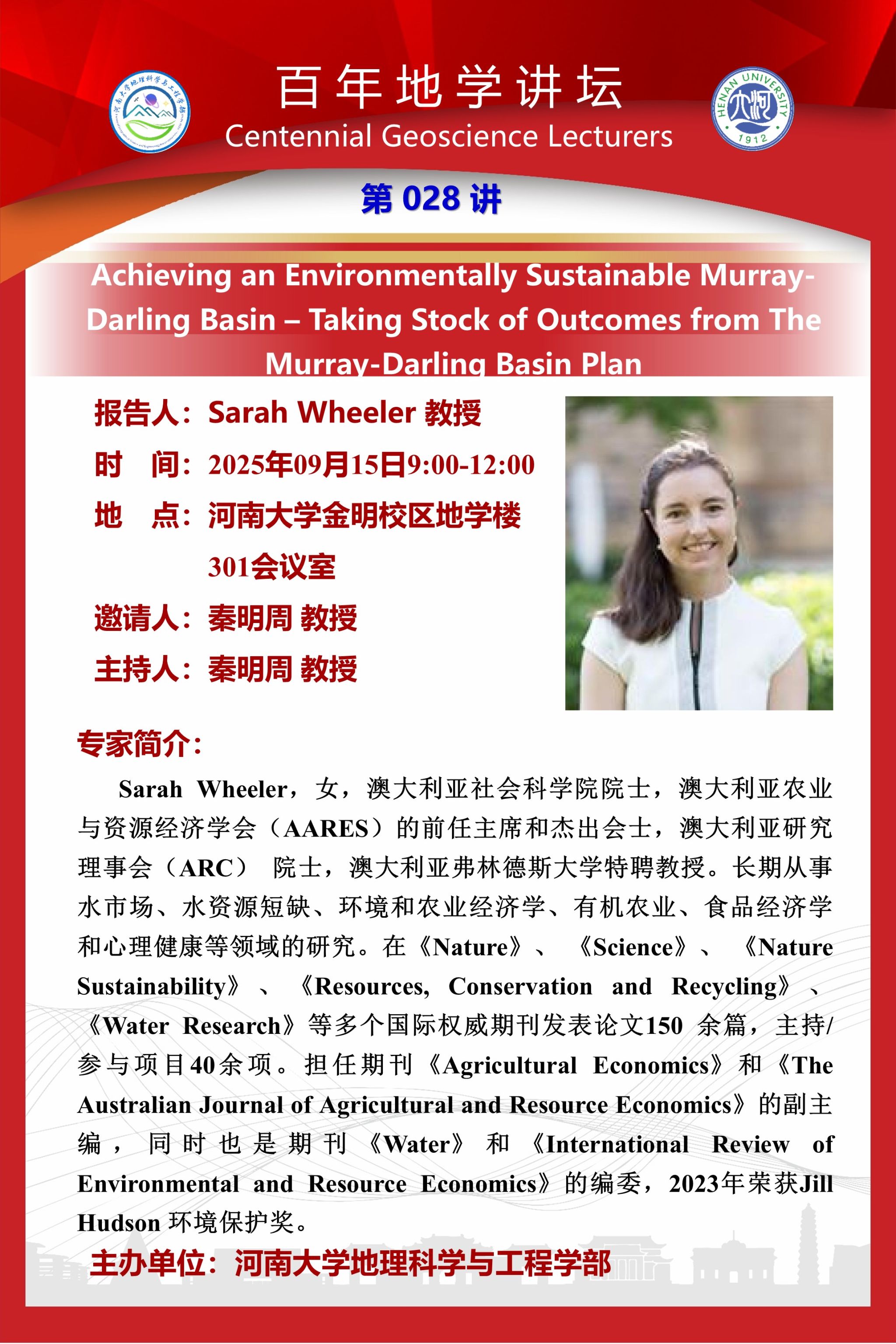 百年地学讲坛|Achieving an Environmentally Sustainable Murray-Darling Basin – Taking Stock of Outcomes from The Murray-Darling Basin Plan