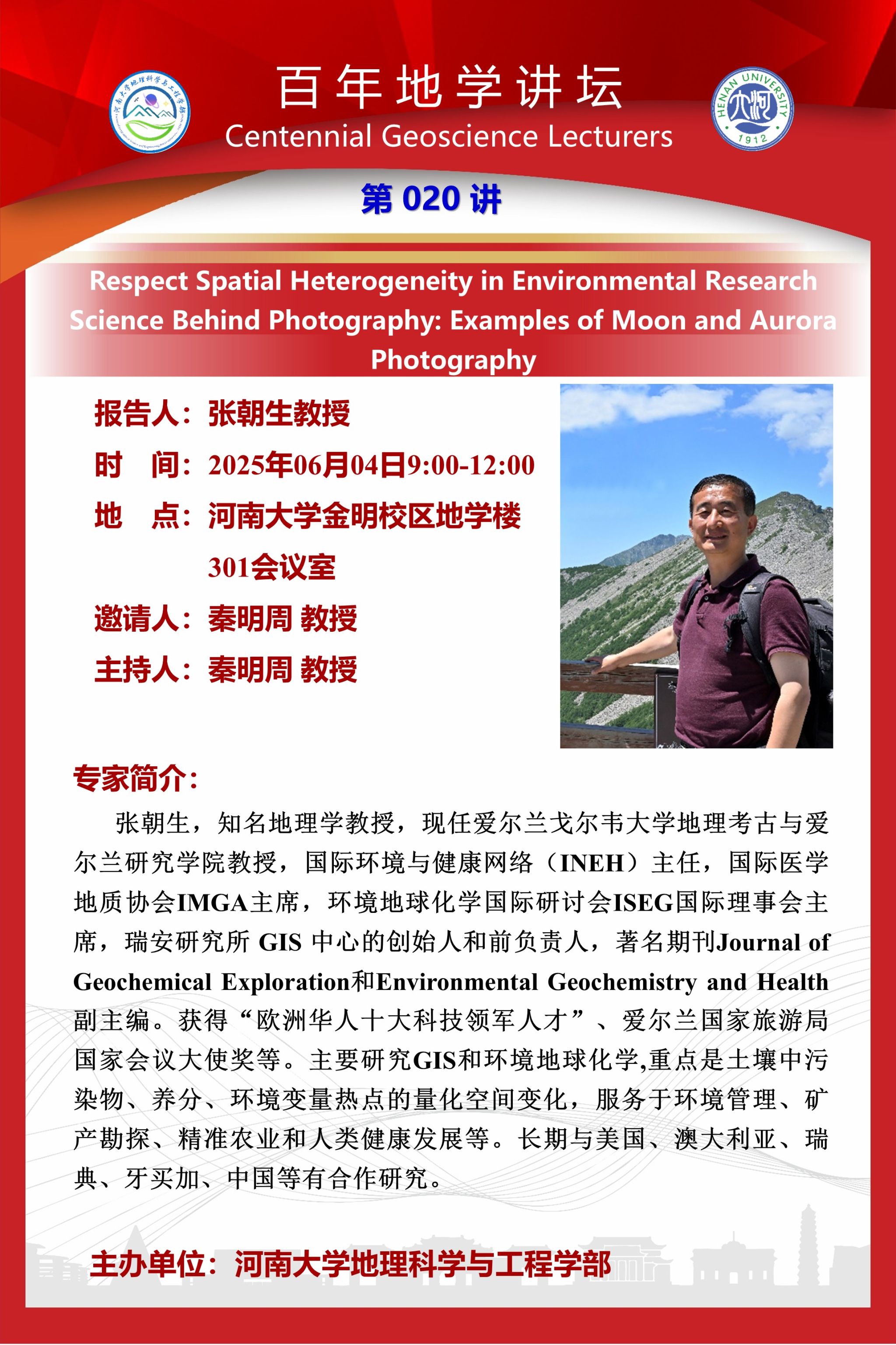 百年地学讲坛|Respect Spatial Heterogeneity in Environmental Research Science Behind Photography: Examples of Moon and Aurora Photography