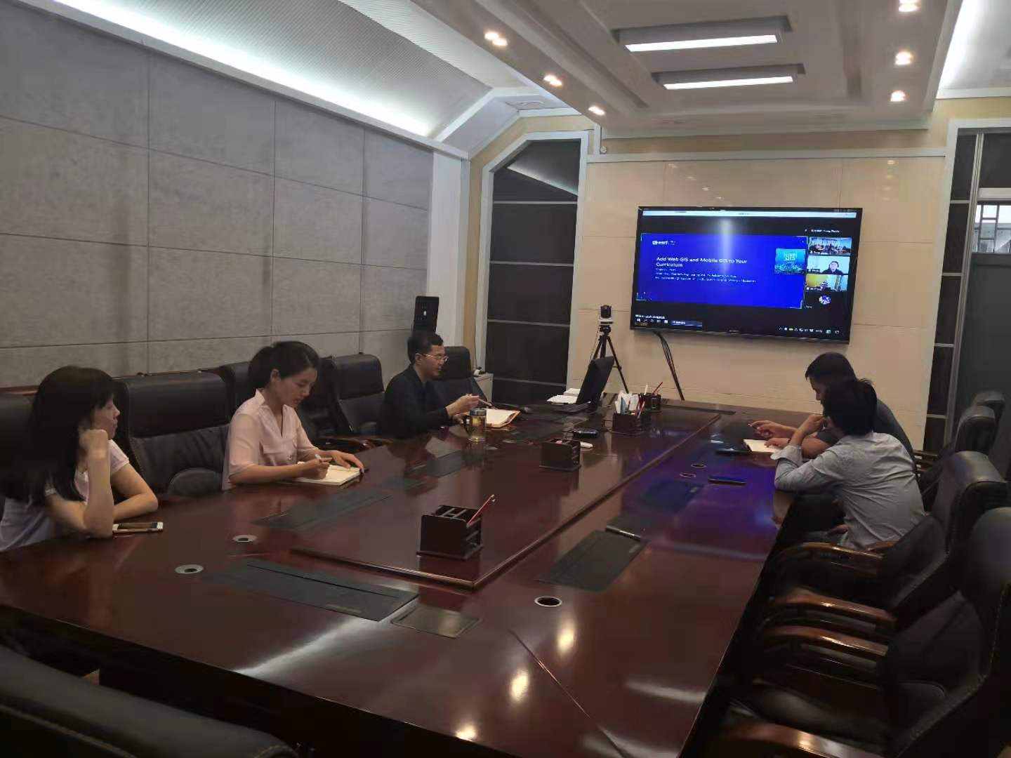 6月2日上午,在地学楼四楼研讨厅Web GIS国际联合虚拟教研室召开《Web GIS原理与技术》教材修订研讨会。会议由Web GIS国际联合虚拟教研室主任秦耀辰教授主持,副主任、美国环境系统研究所(Esri)高级主管付品德教授,Esri高级软件工程师常捷博士通过腾讯会议(会议号:282964136)网上参会,其他教材作者线上或现场参会。