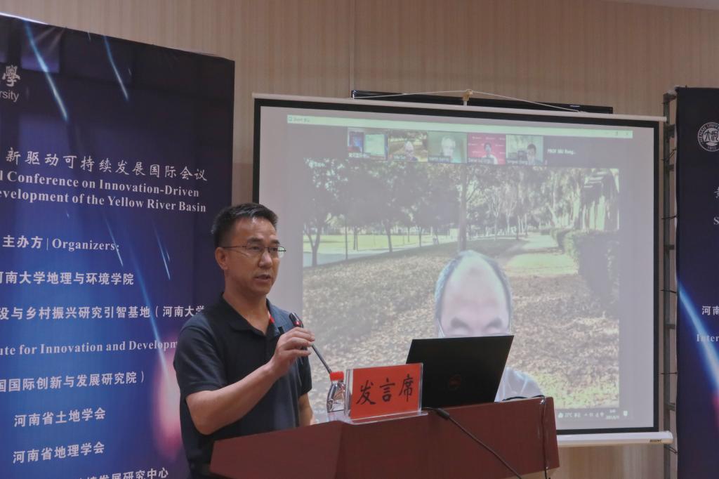 黄河文明省部共建协同创新中心的孙一飞教授主持,围绕“创新发展战略与政策”主题,弗吉尼亚理工大学的Daniel D. Sui教授,加利福尼亚大学戴维斯分校的Martin Kenney教授,加利福尼亚大学洛杉矶分校的Yongwei Sheng教授分别作了题为“Innovation-driven urban and regional development: The Virginia Tech experience”,“Platform Economy Firms Meet the State: China, US, EU, Russia, and Beyond”,“Some Critical thinking on environmental evolution and sustainability in the Yellow River basin”的报告。