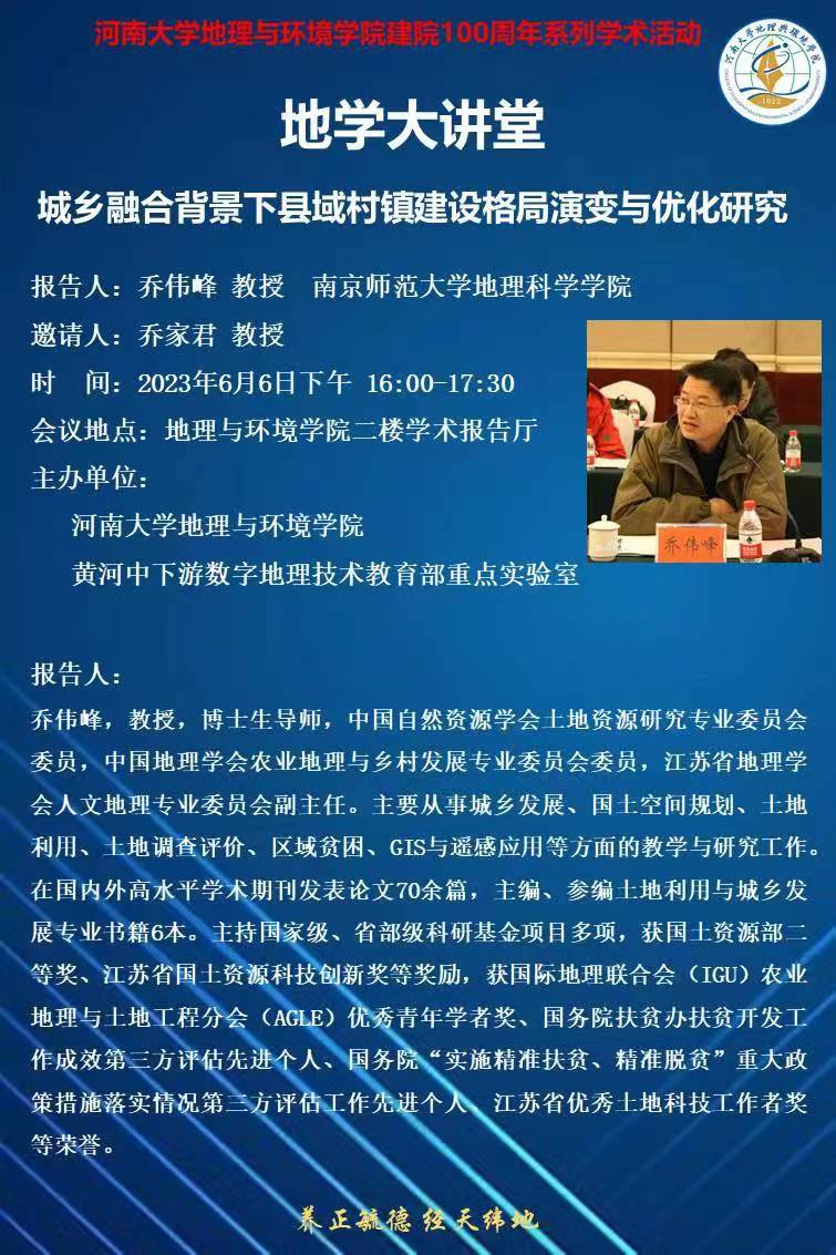 地学大讲堂:城乡融合背景下县域村镇建设格局演变与优化研究
