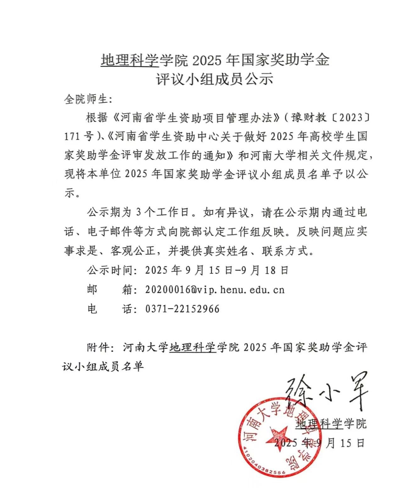 评议小组名称 | 2024级地理科学专业国家奖助学金评议小组 |