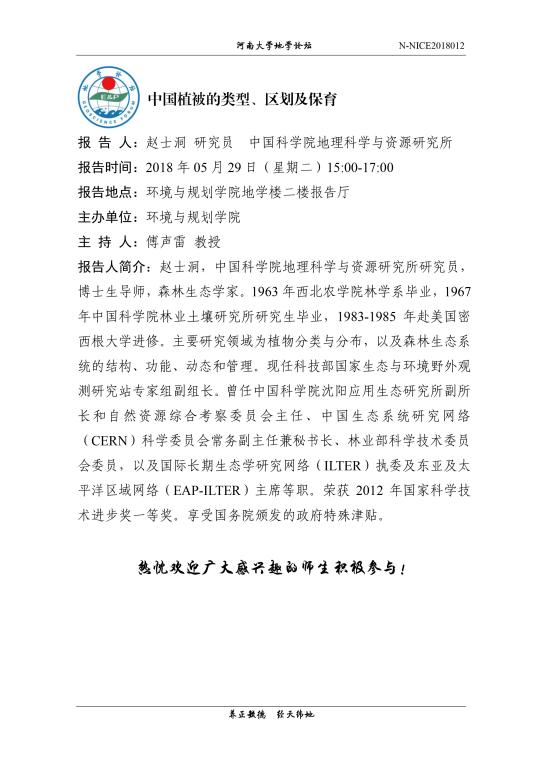 【地学论坛】中国植被的类型、区划及保育(时间:5.29,15:00-17:00)