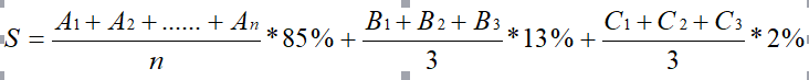 其中A为三个学年共修课程成绩;n为三个学年共修课程门次;B为学年非专业素质成绩;C为学年民主测评成绩。