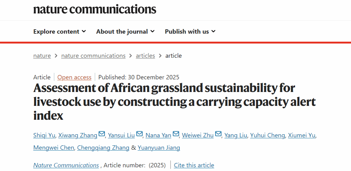 论文信息:Yu, S., Zhang, X*., Liu, Y*. et al. Assessment of African grassland sustainability for livestock use by constructing a carrying capacity alert index. Nat Commun (2025). //doi.org/10.1038/s41467-025-68084-7