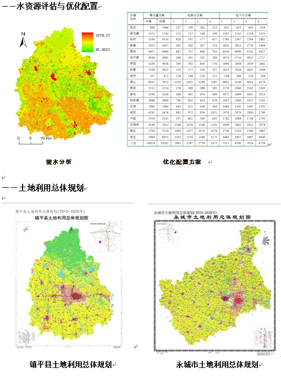 (1)土地利用总体规划。基于第二次土地调查变更数据,完成了河南省淅川县、永城市、卢氏县等多个县市的土地利用总体规划工作,为解决地方建设的用地问题、实现土地的节约集约利用提供了保障,成果顺利通过河南省国土资源厅组织的专家组评审和验收,受到地方政府的好评。