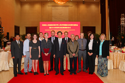 9月29日,河南省人民政府在郑州黄河迎宾馆举行庆祝中华人民共和国成立65周年招待会暨2014年“黄河友谊奖”颁奖仪式。省委副书记、省长谢伏瞻发表热情洋溢的致辞并为获奖者颁奖。校长娄源功、麻豆传媒a片