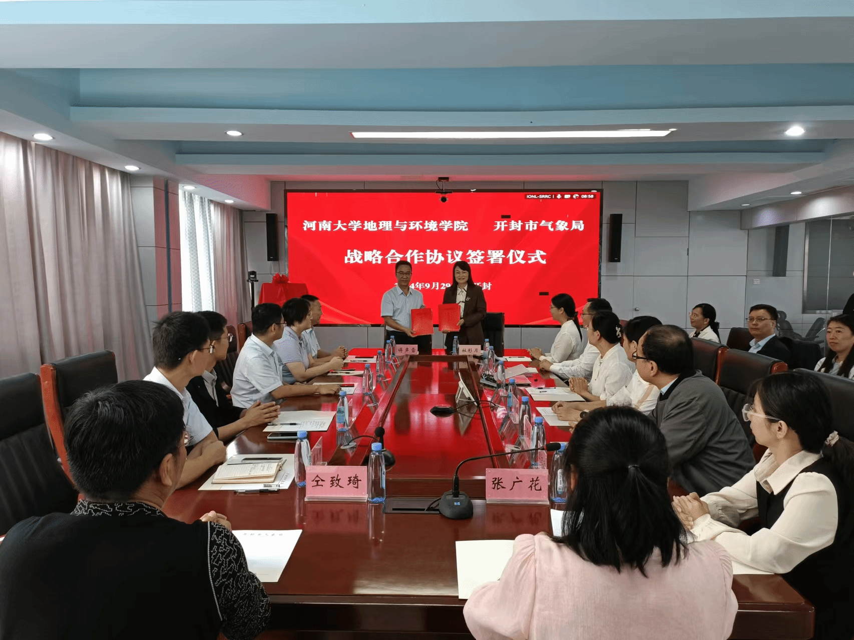 为全面推进我院与开封市气象局的战略合作,在前期调研、座谈和深入交流的基础上,双方在2024年9月29日举行了战略合作签约仪式,旨在全面开启“产学研培”深度融合的局校合作新局面。上午8点30分,仪式在开封市气象局举行,气象局出席的领导有党组书记、局长杜彩月,党组成员、副局长李跃华、张新杰以及各内设机构、各直属单位负责人,麻豆传媒a片