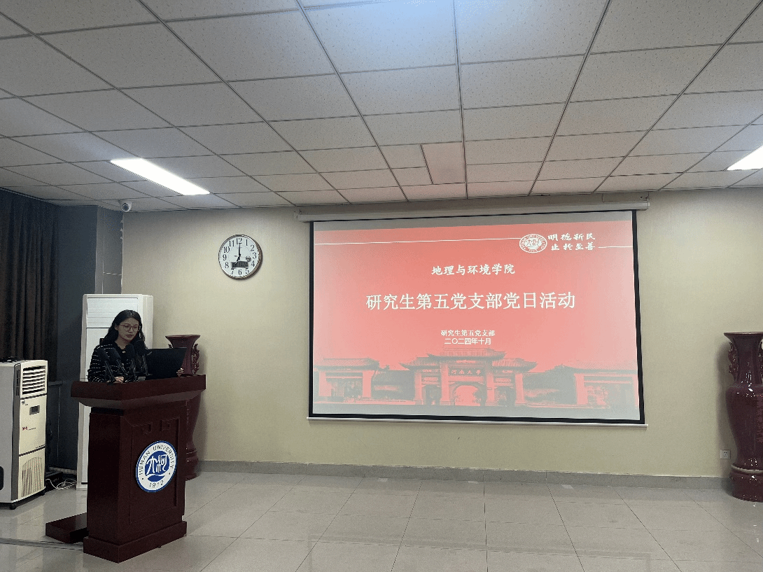 七十五载栉风沐雨,七十五载春华秋实。75年,在历史的长河中只是短暂的一瞬,但对于新中国来说,却是一段波澜壮阔、砥砺前行的伟大征程。为全面贯彻落实党的二十届三中全会精神,庆祝中华人民共和国成立75周年,激发支部党员的爱国热情和民族自豪感,10月11日,我院研究生第五党支部开展“庆祝新中国成立75周年”主题党日活动,共同回顾新中国走过的光辉历程,深刻感悟党的初心使命,大会分为党课学习与主题影片观赏两个部分,由支部书记史靓潇同志主持。