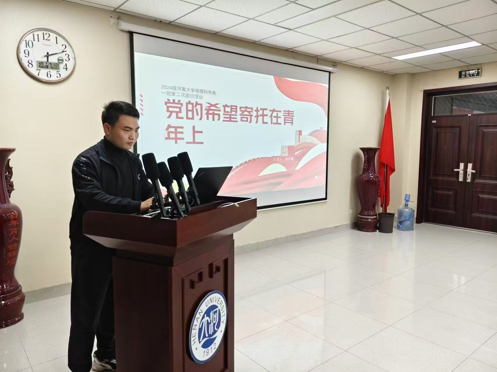 为引导支部成员深刻领会党的期望,激发他们的奋斗精神和使命感。10月27日,我院2024级地理科学类一班团支部于地学楼二楼学术报告厅开展“党的希望寄托在青年上”主题团日活动。本次团日活动由我院2024级地理科学类一班团支部书记谢文博主持,支部全体团员积极参加。