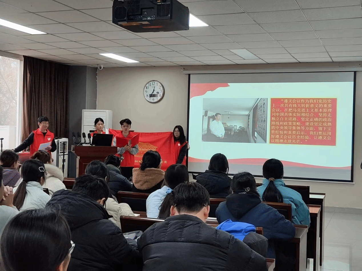 活动的第一部分,由宣讲团成员为与会人员讲解沂蒙精神与遵义会议精神。他们提到,沂蒙精神是山东沂蒙山区人民在革命战争年代形成的伟大精神,其核心是“爱党爱军、开拓奋进、艰苦创业、无私奉献”。沂蒙精神蕴含着深厚的家国情怀,在当下仍然激励着我们勇于担当,积极投身于国家和民族的事业中,以实际行动报效祖国、服务人民。遵义会议作为党的历史上一次具有伟大转折意义的重要会议,在把马克思主义基本原理同中国具体实际相结合、坚持走独立自主道路、坚定正确的政治路线和政策策略等方面,留下了宝贵经验和重要启示。遵义会议为我们在新时代推进中国式现代化的伟大征程中,进一步深化“两个结合”所提供的方法论,对于当下推进党的建设新的伟大工程、实现中华民族伟大复兴的中国梦仍具有重要的指导意义。