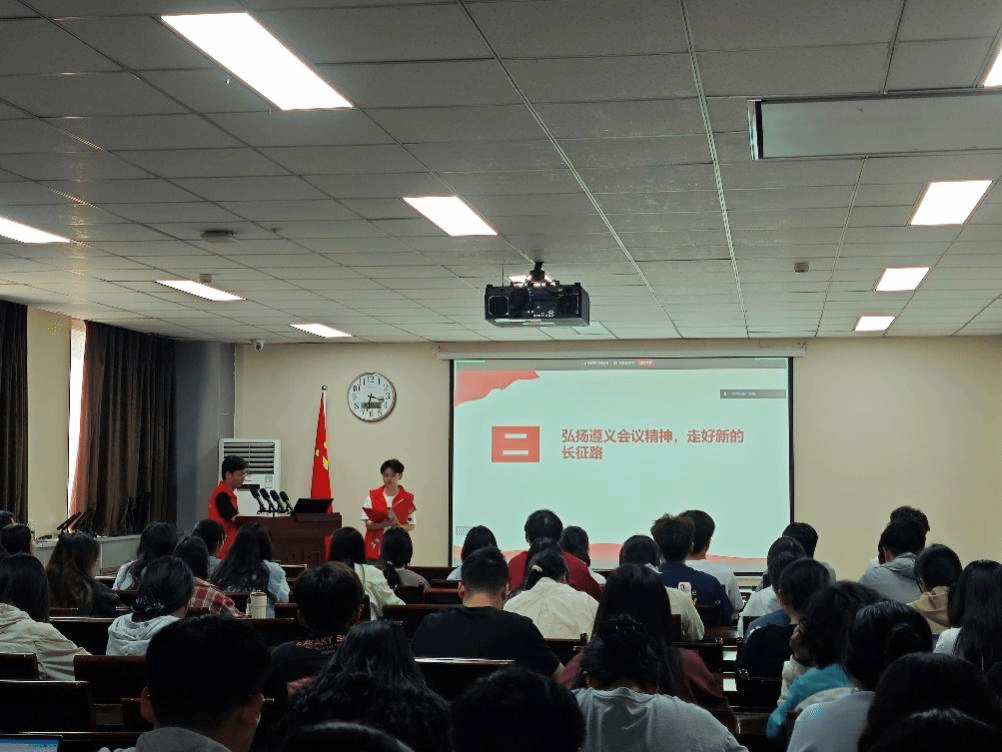 4月22日下午,遵心青年志愿宣讲团在地学楼二楼学术报告厅为入党积极分子带来了一场主题鲜明、内容丰富的红色宣讲活动。宣讲团成员简瑞东以“遵义会议:伟大转折与精神传承”为主题,通过生动的语言、详实的史料和丰富的多媒体素材,带领入党积极分子重温了党的光辉历程,深刻感悟遵义会议的伟大历史意义。