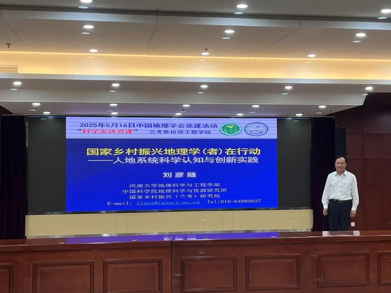 在“百名科学家讲党课”环节,刘彦随以《人地系统科学认知与创新实践》为题授课。他结合自身在乡村振兴、城乡转型等领域的科研经历,提出地理学需以“顶天立地惠民”为目标,既注重理论创新(如“人地系统耦合理论”),又聚焦基层实践(如兰考“千里神垅”工程)。刘彦随强调,地理学应打破传统学科边界,推动“地理科学工程化”,通过多学科交叉解决全球变暖、乡村空心化等复杂问题,以学科发展服务“双碳”目标与乡村振兴战略。