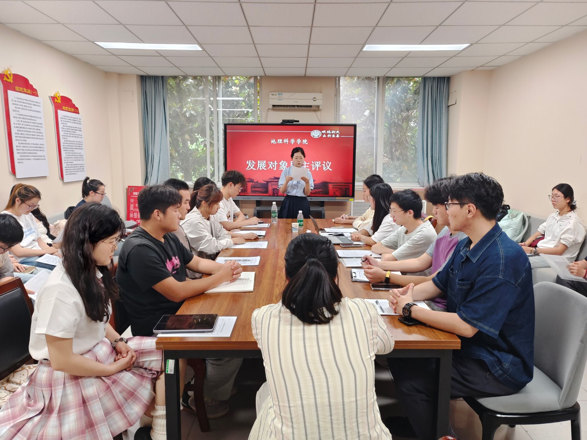 本科生第二党支部于地学楼二楼党支部书记活动召开预备党员转正大会暨发展对象民主评议会。本科生第二党支部全体预备党员、发展对象参加会议。会议由本科生第二党支部组织委员马利群主持。