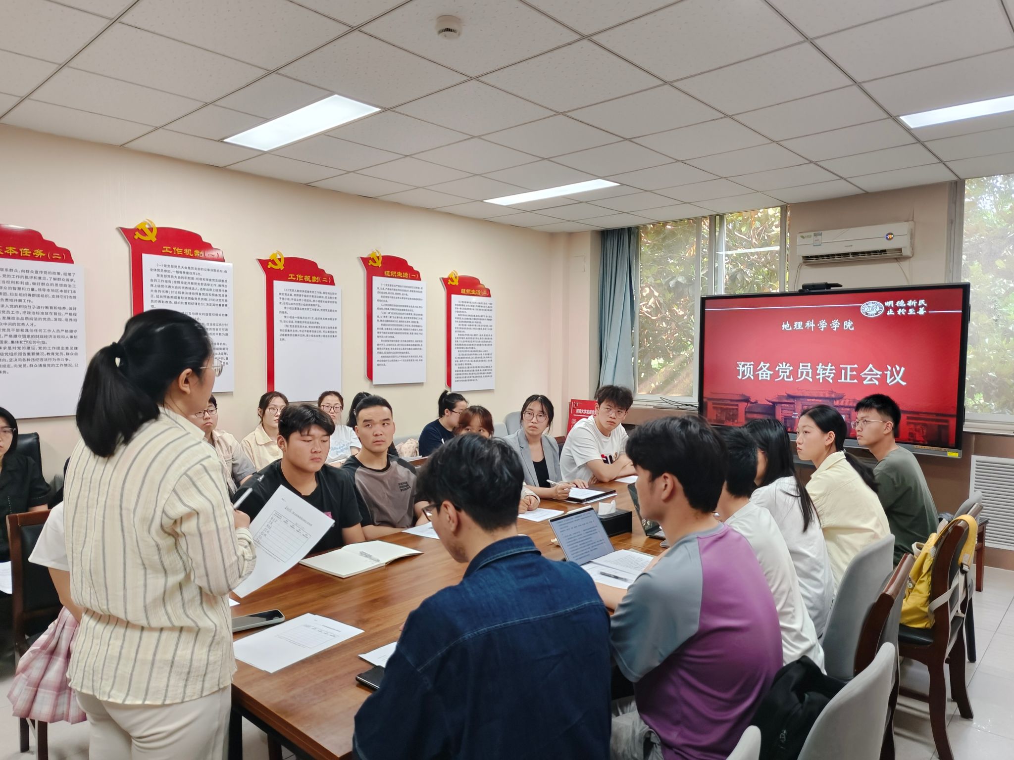 会议伊始,马利群向与会人员简要介绍了本次会议的目的。她强调党员转正工作是一件严肃、隆重的事情,全体党员、预备党员、发展对象都应认真对待,并铭记这个重要的时刻。