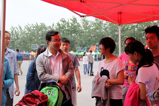 4月14日下午,我院党委副书记刘会军、团委负责老师宋根鑫到达学院春季运动会大本营,看望参赛运动员和辛勤服务的志愿者们。