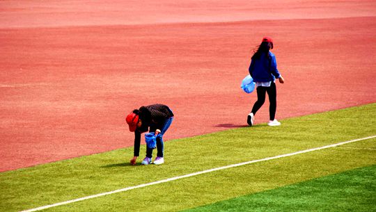 我院的青年志愿者形成了绿茵场上的一点“红”。运动会期间,他们的身影一直活跃在我们身边。他们搬运器材、协助裁判或者给参赛者检录,有条不紊地进行分工合作。虽然他们没有运动员那样备受瞩目,但运动会却因有了他们而更加精彩,绿茵场上也因有了他们而显得多彩缤纷。偌大的运动场,他们对场内的垃圾进行清理,使运动员有了安全干净的比赛环境。红色的跑道上,他们对赛道秩序的维护,让比赛井然有序地进行。
