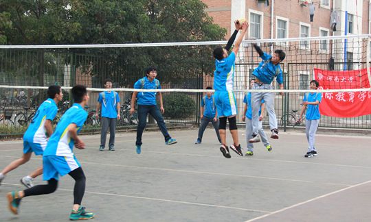 赛前,我院队员们就进入了备战状态,积极地做着热身活动,以求在场上更好地发挥。比赛在裁判的一声口令中正式开始,第一局双方队员都毫不示弱,各自展现出细腻的垫球技巧以及默契的配合。我院队员们沉着冷静,很快进入了状态,他们凭借自身的实力赢得了许多次进攻机会,却因角度问题而未能成功得分,因此在第一局中惜败对方。第二局比赛伊始,我院队员们通过战术上的改变,压制住了对手,然而对方主攻的扣球连连得利,逆转了战局,此情景下我院队员仍保持良好的心态,始终不放弃,主力队员张明启巧妙垫球,并利用单脚跳扣球、勾手扣球等多种方式来回击对手。最终由于国教院攻势猛烈,我院与四强失之交臂。在为期十天的比赛中,我院男排队员们奋力拼搏,获得了河大杯男排比赛第五名的佳绩,取得了自男排建队以来的最好成绩。