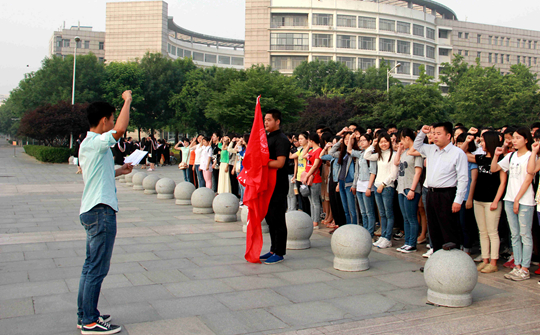 明德广场参加升旗仪式。学院党委副书记刘会军、团委副书记宋永鹏参加此次活动。