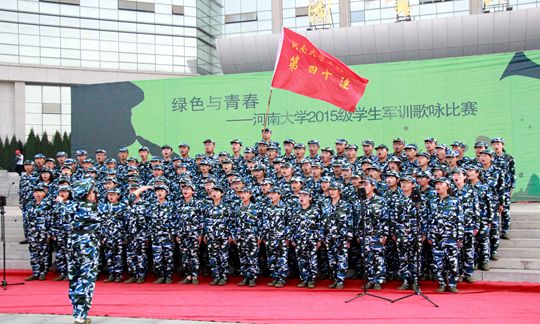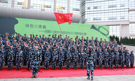 9月16日上午,以绿色与青春;为主题的2015级新生军训歌咏比赛在金明校区明德广场隆重举行。本院新生演唱了《麻豆传媒a片
