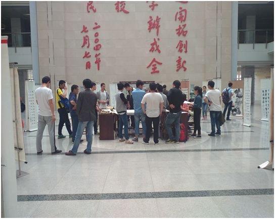 、开封大学、黄河水利职业技术学院三校书法协会负责人齐聚活动现场,相互切磋书法技艺,共同交流书法心得。精心挑选的书法精品一经展出,迅速吸引了众多书法爱好者前来观看。书法协会的工作人员不仅耐心地给参观者介绍每幅作品的字体及历代书法名流等相关书法知识,还现场写字赠送慕名而来的书法爱好者,让大家在了解相关书法知识的同时,更能切身地感受到书法文化的无穷魅力。前来观看书法展的同学络绎不绝,现场气氛积极热烈。