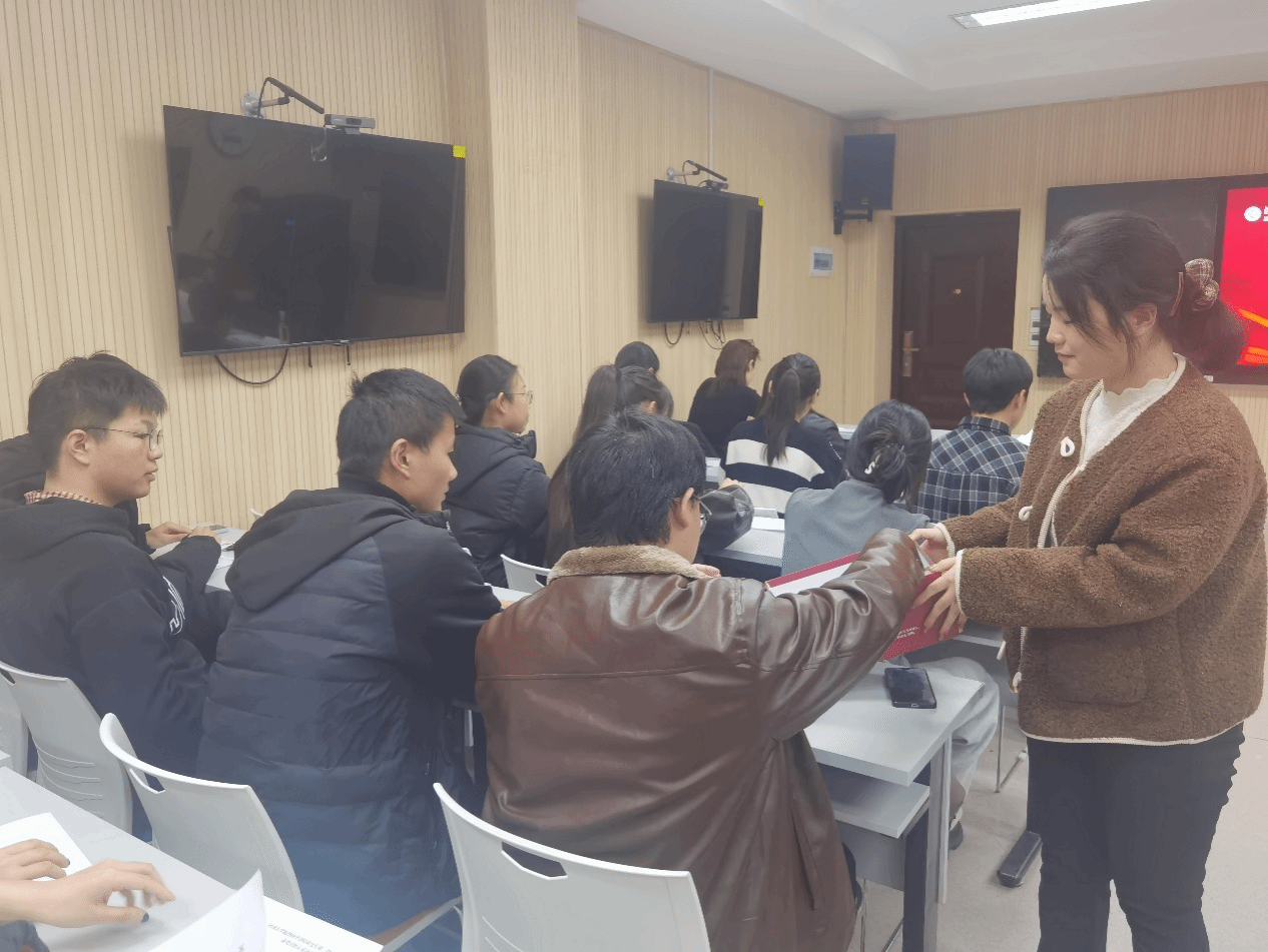 研究生第二党支部在金明校区一号楼101教室召开预备党员转正大会,顺利完成了周婉婷、张柯磊两位预备党员的转正程序。本次大会由党支部宣传委员赵祥臣同志主持,记录人为杜豫同志。应到有表决权党员29名,实到24名,请假5名,实到人数超过应到会有表决权党员的半数,符合规定,会议有效。