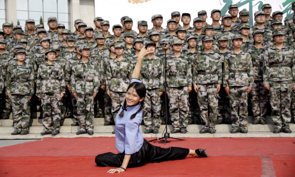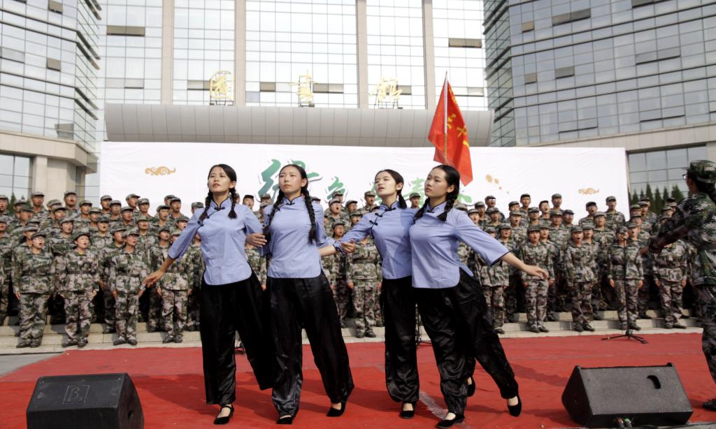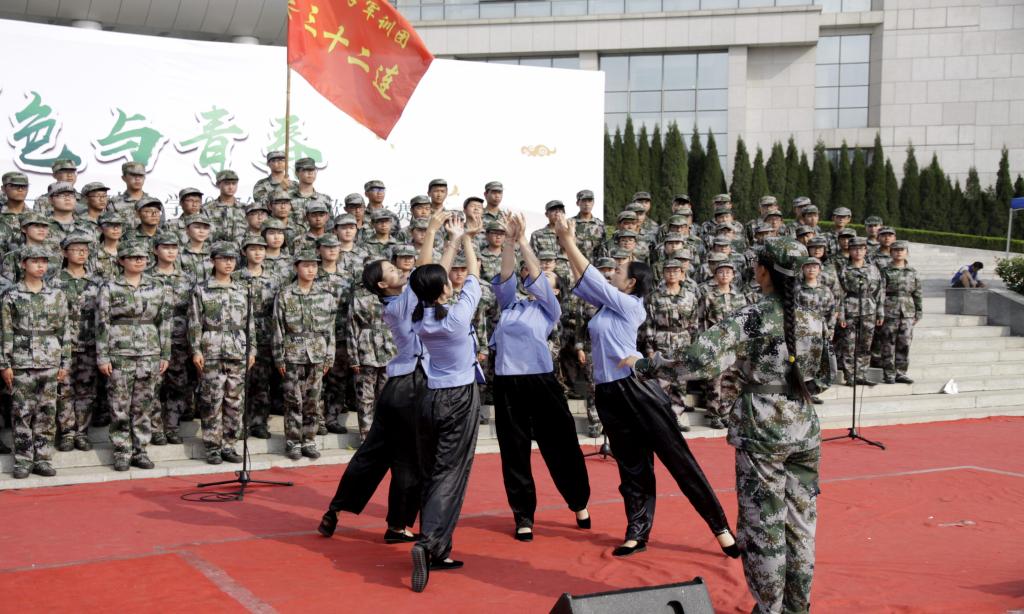 军训工作的一项重要内容,是对大学新生进行爱国主义、集体主义的生动教育。学院按照学校要求积极准备,聘请专业辅导老师指导练习。新生利用中午与晚上的休息时间认真排练,从发音、感情与不同声部间配合等多方面着手,不厌其烦地一遍遍练习,力求达到最佳效果。在比赛过程中,我院台上演唱同学精神焕发、士气高昂,指挥员手势准确,富有激情。其中,演唱曲目《黄水谣》不仅平易动人,感情饱满,同时还配上了动人的舞蹈和钢琴伴奏,场上气氛一度被推向高潮,赢得了在场评委观众的阵阵掌声。