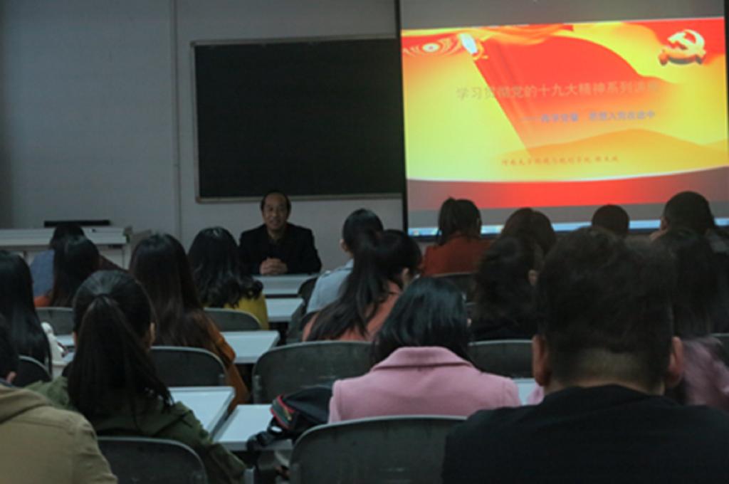 为深入学习贯彻落实党的十九大精神,11月16日下午,学院研究生党支部在520教室举办了学习党的十九大精神的讲座。讲座由研究生第一党支部书记陈太政主持。