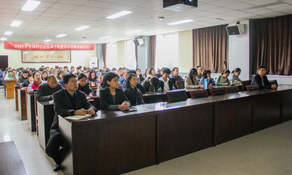 10月15日下午,环境与规划学院组织师生在学院二楼报告厅集中收看了2018年全国科学道德和学风建设宣讲教育报告会。会议主题是“以习近平新时代中国特色社会主义思想为引领,大力弘扬新时代中国科学家精神和爱国奋斗精神”。报告会由宋永鹏老师主持。