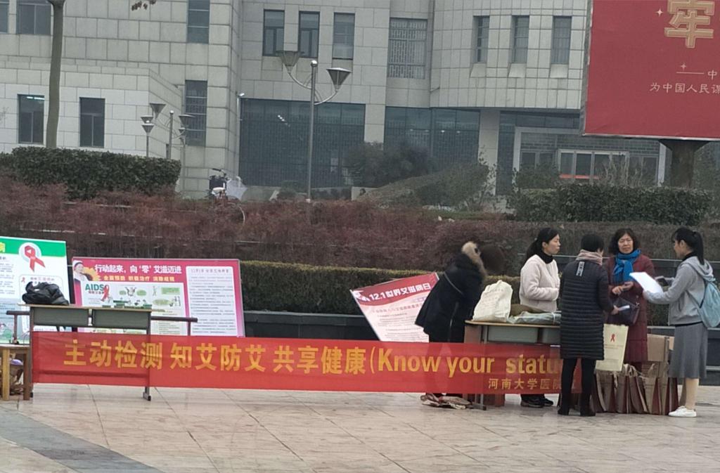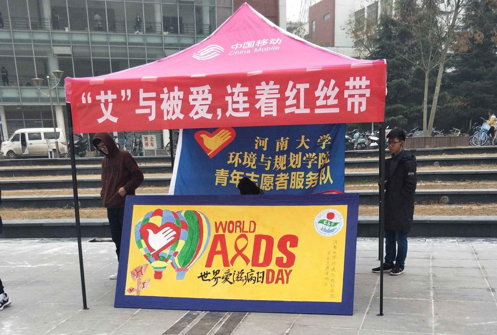 上午九点,青协成员在金明校区下沉广场摆出事先画好的展板,给同学们发放有关防治艾滋病的宣传资料。同时,值班人员还积极向同学们介绍与艾滋病相关的预防知识。活动末,校医院负责人员组织学生集体观看了艾滋病影像宣传片。