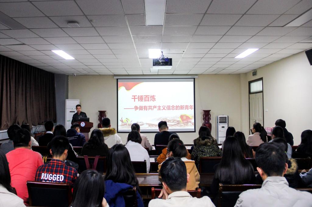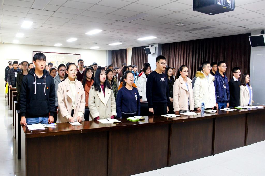 团委书记沙莎、我院党委副书记徐小军、党委办公室主任王艾萍出席本次仪式。本次仪式由学院团委负责人、17级辅导员赵越主持,学院团干及入党积极分子等131人到场聆听。
