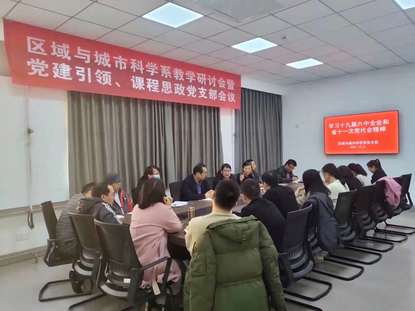接着,区域与城市科学系召开了党支部会议。首先,全面学习了十九届六中全会和河南省第十一次党代会精神;其次,围绕系室特色,对河南省近期提出的“十大战略”,尤其是创新驱动、科教兴省、人才强省重大战略进行重点学习,以助推科教融合下的人文地理与城乡规划专业建设。再次,根据学校保密工作文件要求,系统学习了保密工作的重要性,要求全系师生都要提高保密意识、强化保密观念。最后,大家围绕上述议题展开激烈讨论,并纷纷提出自己的见解和规划,这也为党建引领下的麻豆传媒a片