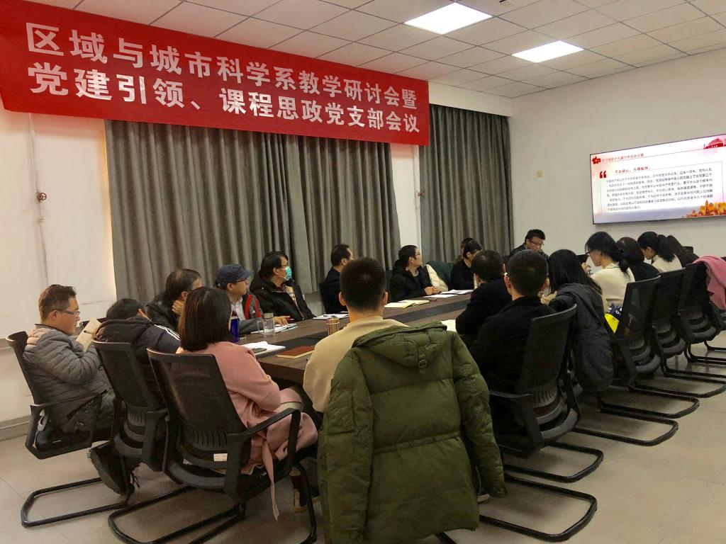 为进一步推进我院基层教学组织改革与创新,推进人文地理与城乡规划专业高质量发展,同时为进一步落实党建引领、课程思政理念下的教学改革,12月2日下午,区域与城市科学系在人文楼举办教学研讨会并召开党支部会议。本次会议由学院区域与城市科学系党支部书记、系主任丁志伟主持,学院党委委员、教学副院长赵威致辞,区域与城市科学系全体教师参加了此次会议。此外,部分承担人文地理与城乡规划专业课程的其他校内外老师在“云端”参加了会议。