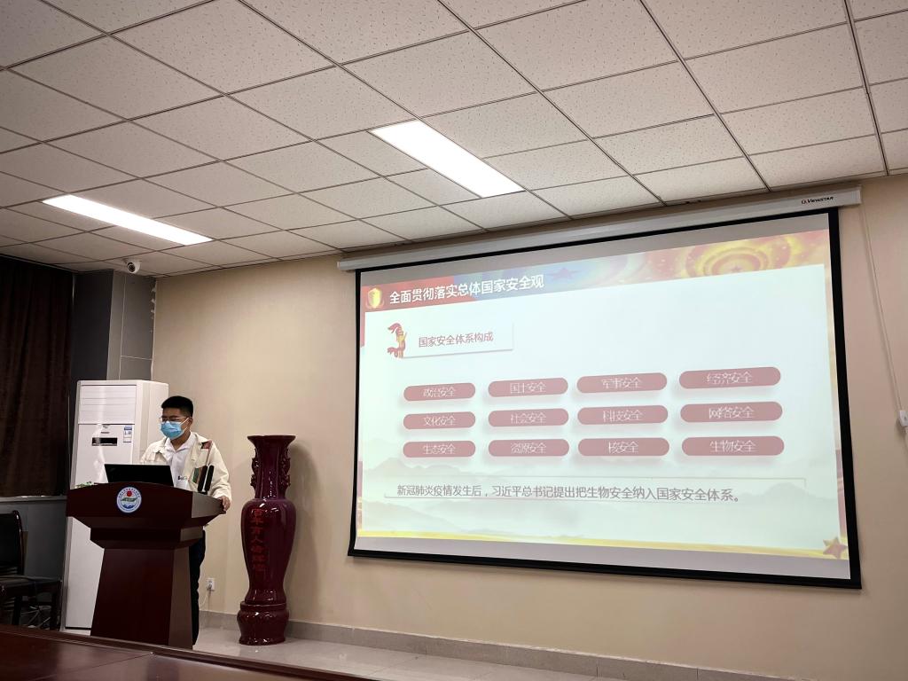 李万隆同志首先带领大家学习习近平总书记关于国家安全工作的重要论述,并回顾了总体国家安全观的发展历程。总体国家安全观是习近平总书记亲自部署、亲自提出的重大战略思想,为新形势下维护国家安全工作确立了重要遵循。2015年7月1日,第十二届全国人大常委会第十五次会议通过《中华人民共和国国家安全法》,将每年4月15日确定为全民国家安全教育日。今年的宣传重点是加大以案普法力度,深入剖析典型案例,让典型案例成为全民法治公开课。随后,李万隆同志以点带面,结合地理学与国家安全的关系,通过剖析典型案例分析了作为研究生应该如何结合自身实际切实维护国家安全。并且通过播放宣传短片,进一步加深了大家的国家安全意识。最后,李万隆同志强调近期国内疫情复杂严峻,带头做好自身安全就是最好的安全教育,各位党员和积极分子要发挥好先锋模范作用,夯实网格化管理,织密疫情“防控网”,坚决筑牢校园疫情防线。