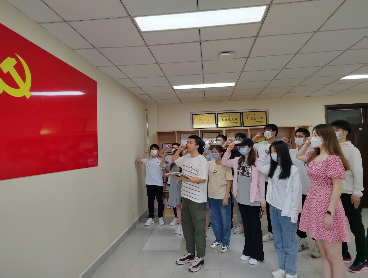 大会伊始,陈鑫向与会同志介绍了预备党员接收流程、本次支部会议议程,以及发展对象的基本情况。随后,即将被组织吸收为预备党员的发展对象依次详细汇报了自己在考察期间的表现,并就对党的认识、入党动机等情况,向支部进行了汇报,入党介绍人向大会介绍其主要政治思想、学习、工作生活等情况。接着,与会正式党员就发展对象能否入党进行讨论,经过充分讨论及正式党员无记名投票票决,大会一致同意接收王清源等19位同志成为中共预备党员。会议最后,朱慧儒带领本次被组织吸收为预备党员的同志面向党旗进行入党宣誓。