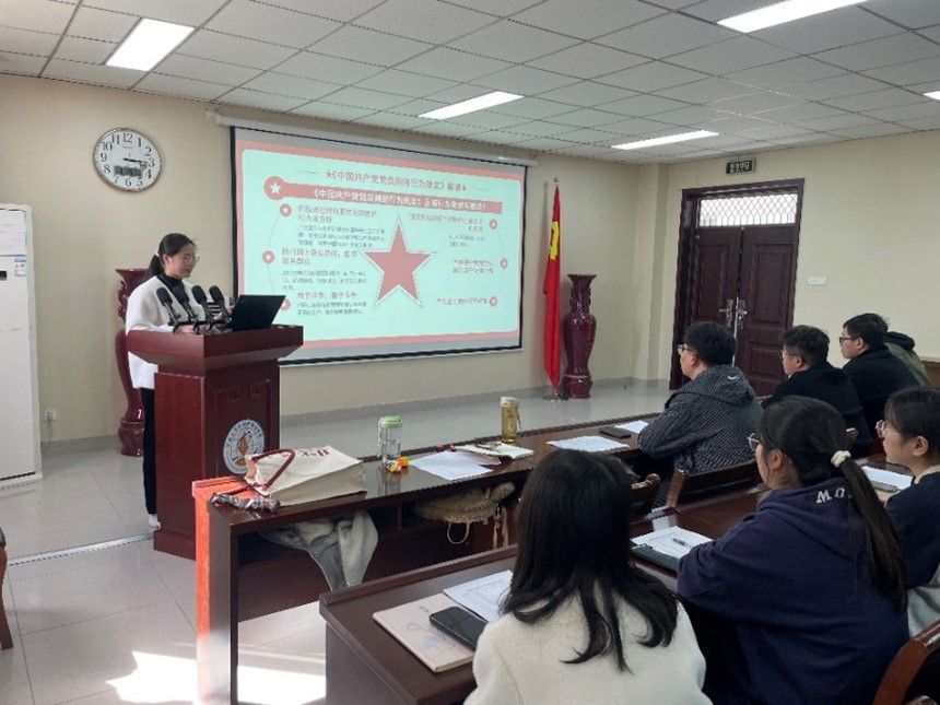 随后,宣传委员孔悦带领全体成员学习《中国共产党党员网络行为规定》。孔悦同志详细介绍了网络行为规定的内容,并用案例向大家阐述共产党员遵守网络行为规定的重要性,呼吁全体成员增强依法用网意识,传播正能量,弘扬主旋律,共筑网上网下同心圆。