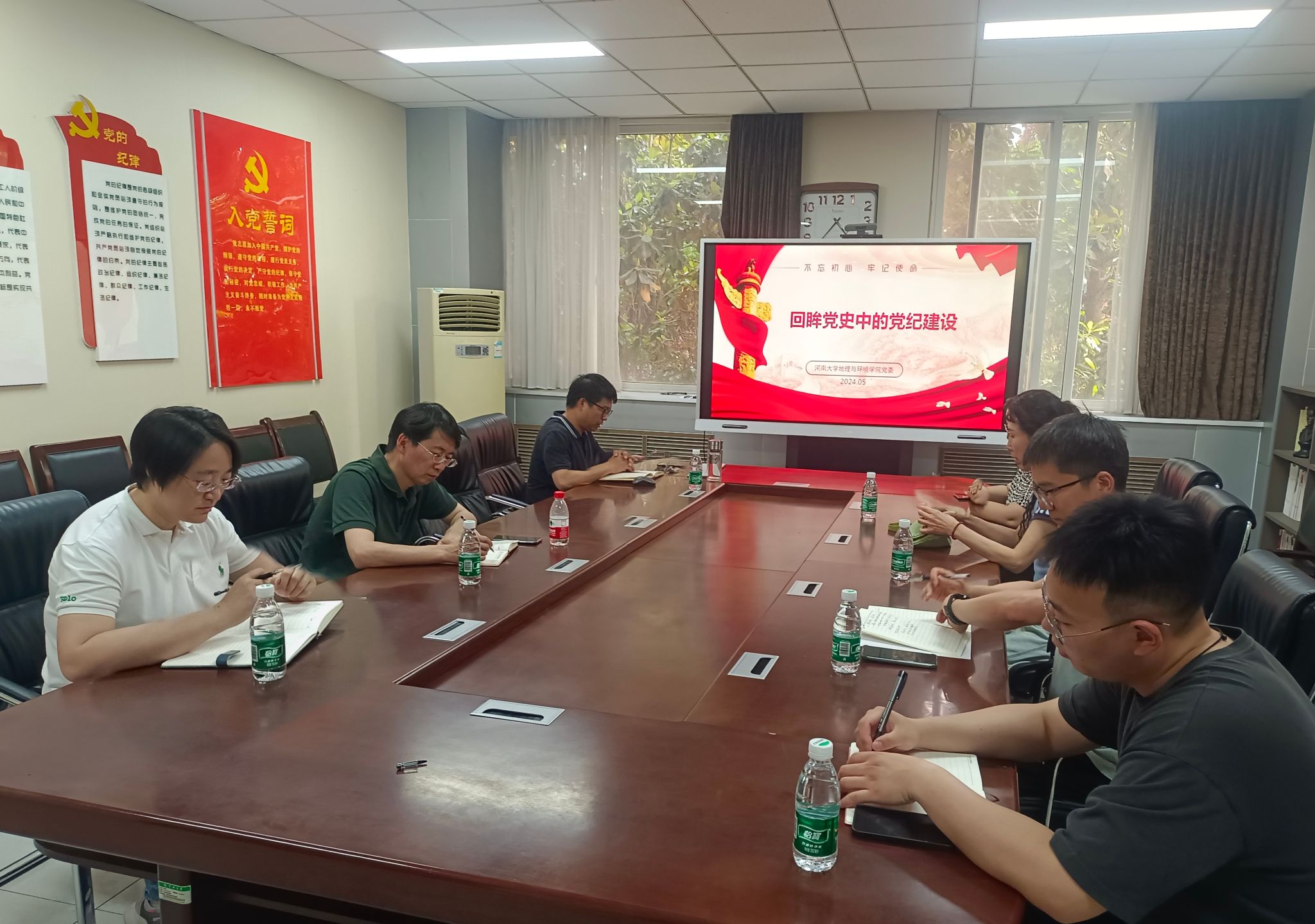 为深入学习贯彻习近平总书记关于党纪学习教育的重要讲话和重要指示精神,加强党的纪律建设,引导党员干部学纪、知纪、明纪、守纪,持续推动党纪学习教育走深走实,5月30日下午,我院行政教工党支部于地学楼二楼党员活动室召开党员大会,学院党委委员、大别山森林生态系统国家野外科学观测研究站副站长卢训令以“回眸党史中的党纪建设”为主题,给支部党员上了一堂生动的党课。