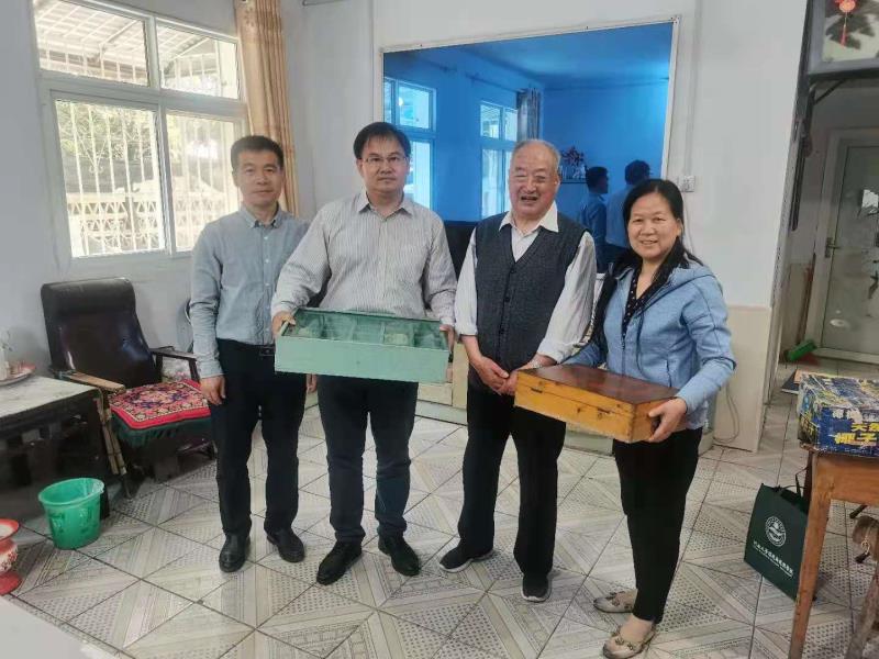 5月11日上午,学院党委书记郑洪涛、副书记徐小军和党办主任王艾萍一行三人专程到已80岁高龄的63级校友方毓昌先生家中接受龟化石和矿石标本捐赠。