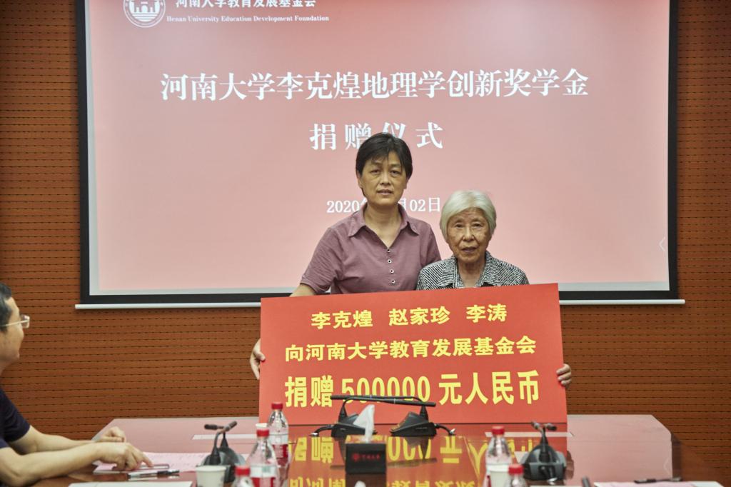,在重病期间,委托我与家人会商决定捐资助学,设立“地理学创新基金”。他深知创新是地理学发展的必经之路,为了实现中国地理学跨越式发展,培养学生的科研创新能力,这是设立此项基金的初心。她希望环境与规划学院学子努力学习,为地理学的创新、发展和祖国建设做出更大的贡献。最后她说,克煌同志一生,生活艰苦朴素,勤俭节约,捐献的钱是他多年的积攒,辛勤劳动所得,凝结着他的汗水和心血,弥足珍贵。希望专款专用,管好、用好这笔基金,让创新者受益,受益者受到激励,良性循环。
