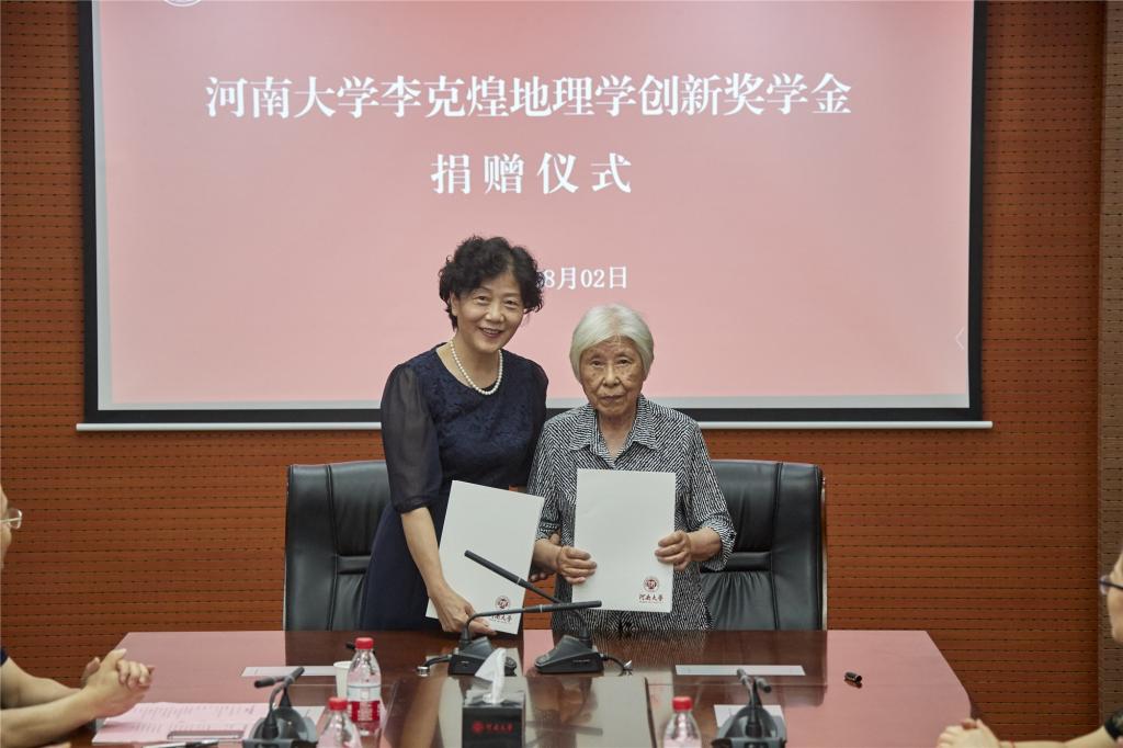 李克煌地理学创新奖学金捐赠仪式在金明校区行政楼208会议室举行。李克煌夫人赵家珍女士、儿子李涛先生、女儿李芳女士及其他家人,校党委副书记雷霆,校总会计师、教育发展基金会副理事长韩守富,教育发展基金会秘书长刘波,环境与规划学院党委书记闫峻、常务副院长乔家君、国家“万人计划”领军人才秦耀辰教授、河南省教学名师马建华教授等相关领导及师生代表出席捐赠仪式。仪式由韩守富主持。
