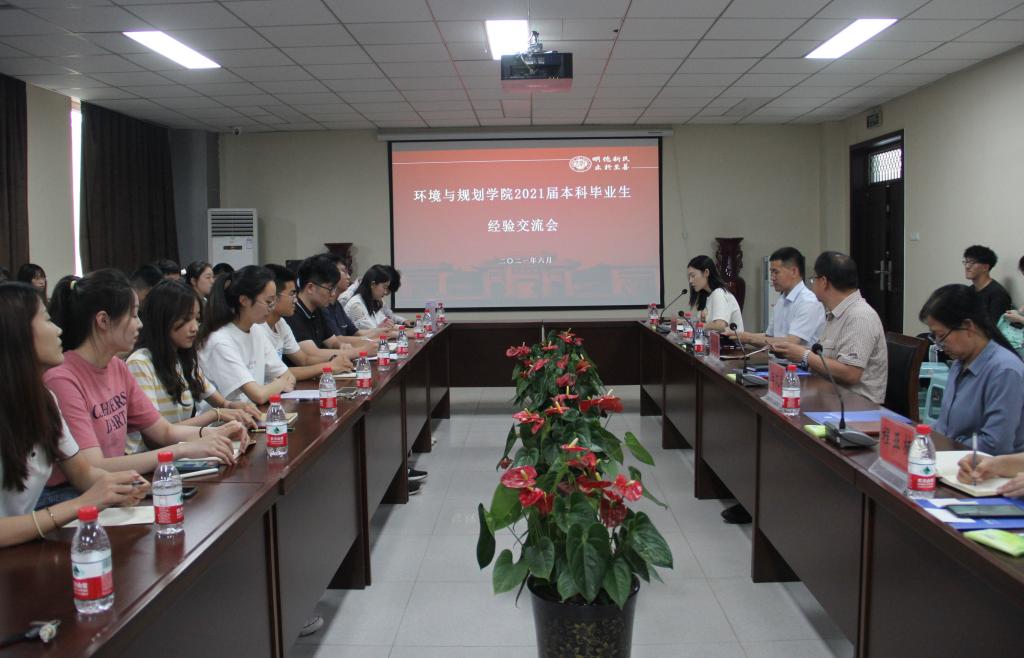 6月3日下午,环境与规划学院2021届毕业生经验交流会在学院二楼报告厅顺利举行。环境与规划学院党委书记郑洪涛,党委副书记徐小军,2018级辅导员王艾萍,2020级辅导员程亚楠出席本次会议。会议由2017级辅导员赵越主持。